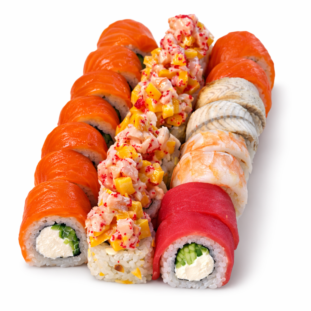 •Філадельфія класік з лососем •Ебі Унагі •Каліфорнія з тигровою креветкою