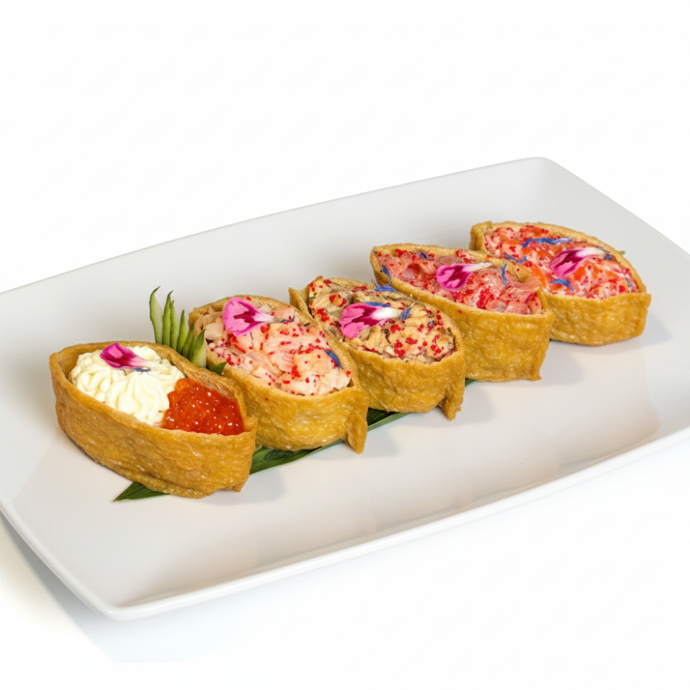 •Інарі з червоною ікрою та крем сиром•Інарі з тигровою креветкою•Інарі з лососем•Інарі з тунцем•Інарі з вугрем