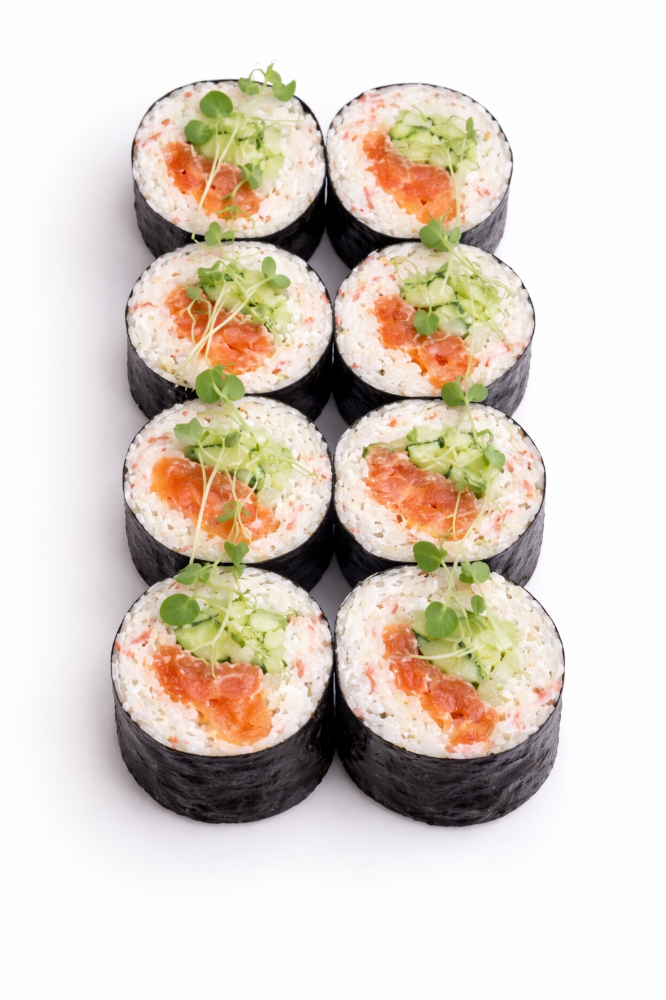 •Філадельфія з лососем та креветкою•Рол вершковий лосось•Футо з лососем та авокадо•Макі з лососем•Макі з лососевою ікрою
